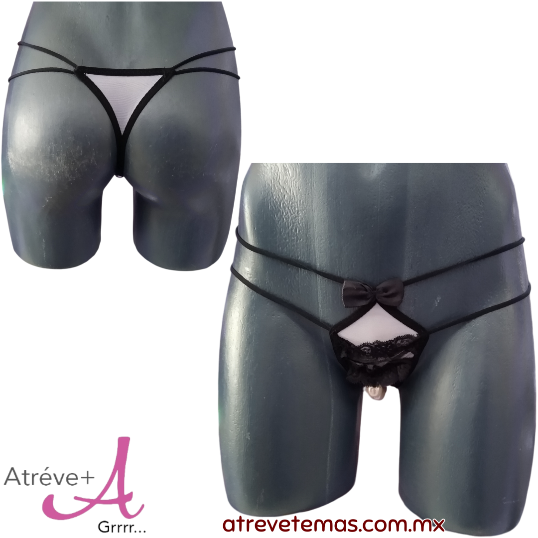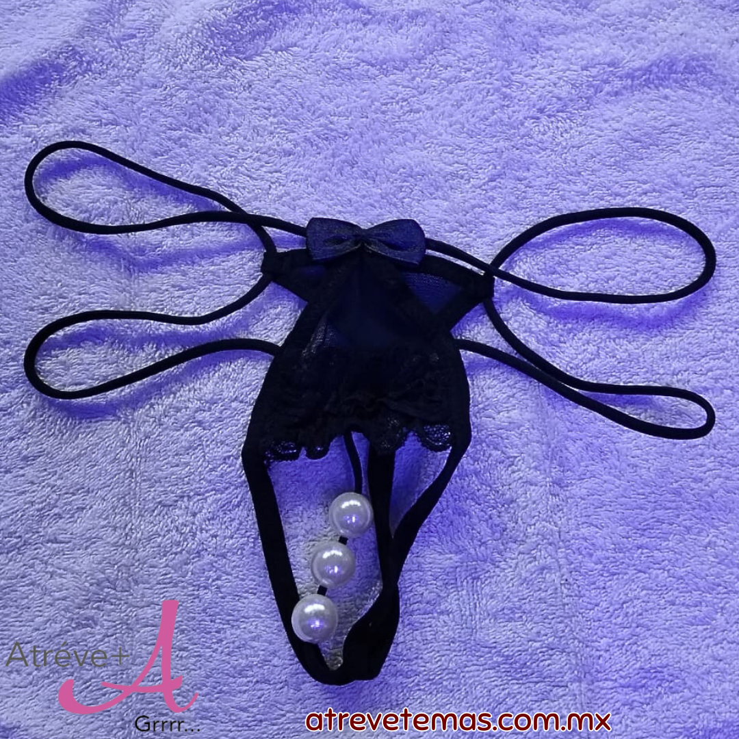 Tanga femenina, mesh, abierta y con perlas
